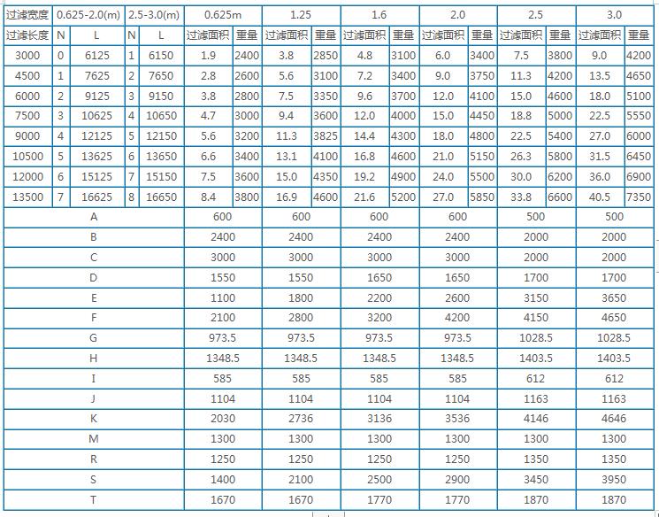 PBF型移動盤式真空過濾機參數(shù)表:(部分規(guī)格)